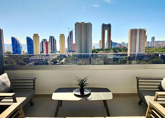El Apartamento Eagle Tower - Spectacular views Benidorm está situado a 25 minutos a pie de la Plaza Mayor y dispone de una piscina exterior con cerca de piscina. A 900 metros se encuentra la parada de autobús más cercana, Benidorm, y la Playa de Poniente está a 2 km.